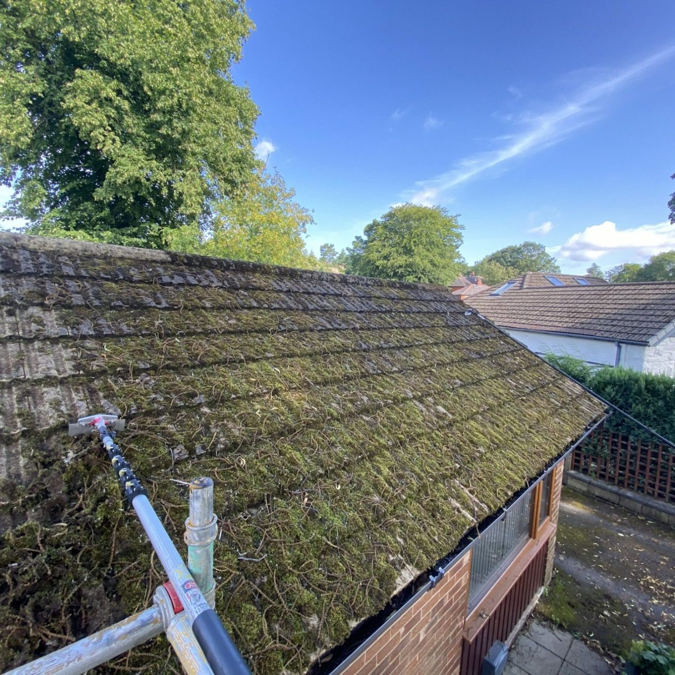 Roof covered in moss or algae? using a specialist scraping tool and biocide treatment we can provide long-lasting protection against further moss growth without causing damage allowing your roof to maintain its integrity while undergoing a thorough clean